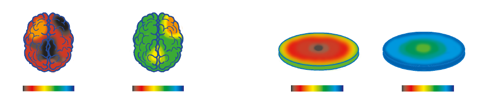 Die Spline-Karte zeigt die elektrische Aktivität des Gehirns auf. Abbildung links.