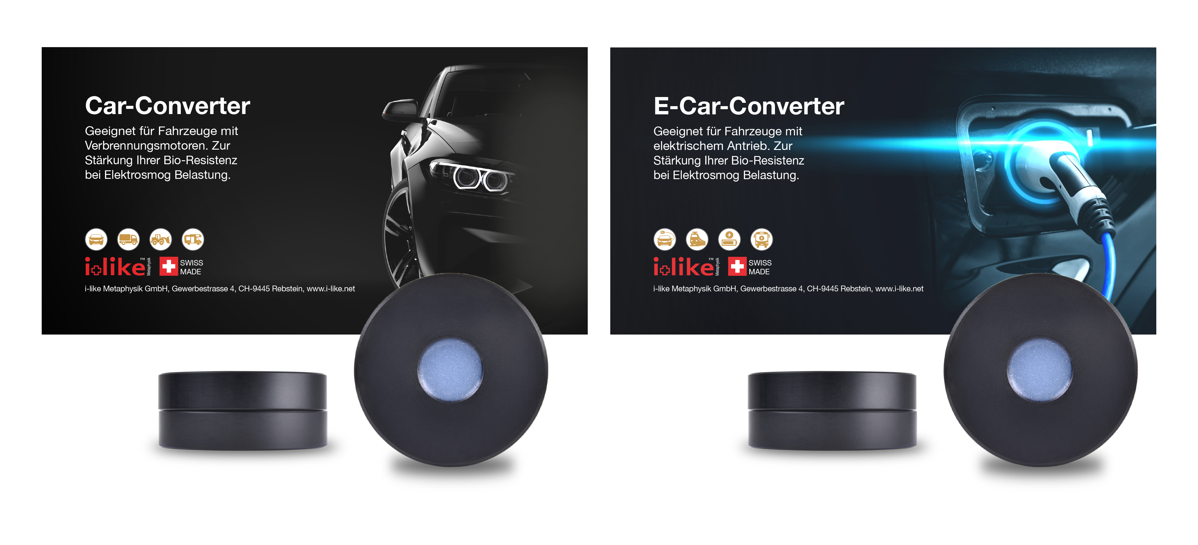 Um die Auswirkungen elektromagnetischer Felder zu harmonisieren, hat i-like die Car-Converter (für Fahrzeuge mit Verbrennungsmotoren) und E-Car-Converter (für Elektrofahrzeuge) entwickelt. Diese basieren auf der bewährten i-like Frequenztechnologie und wurden speziell für den mobilen Einsatz konzipiert.
